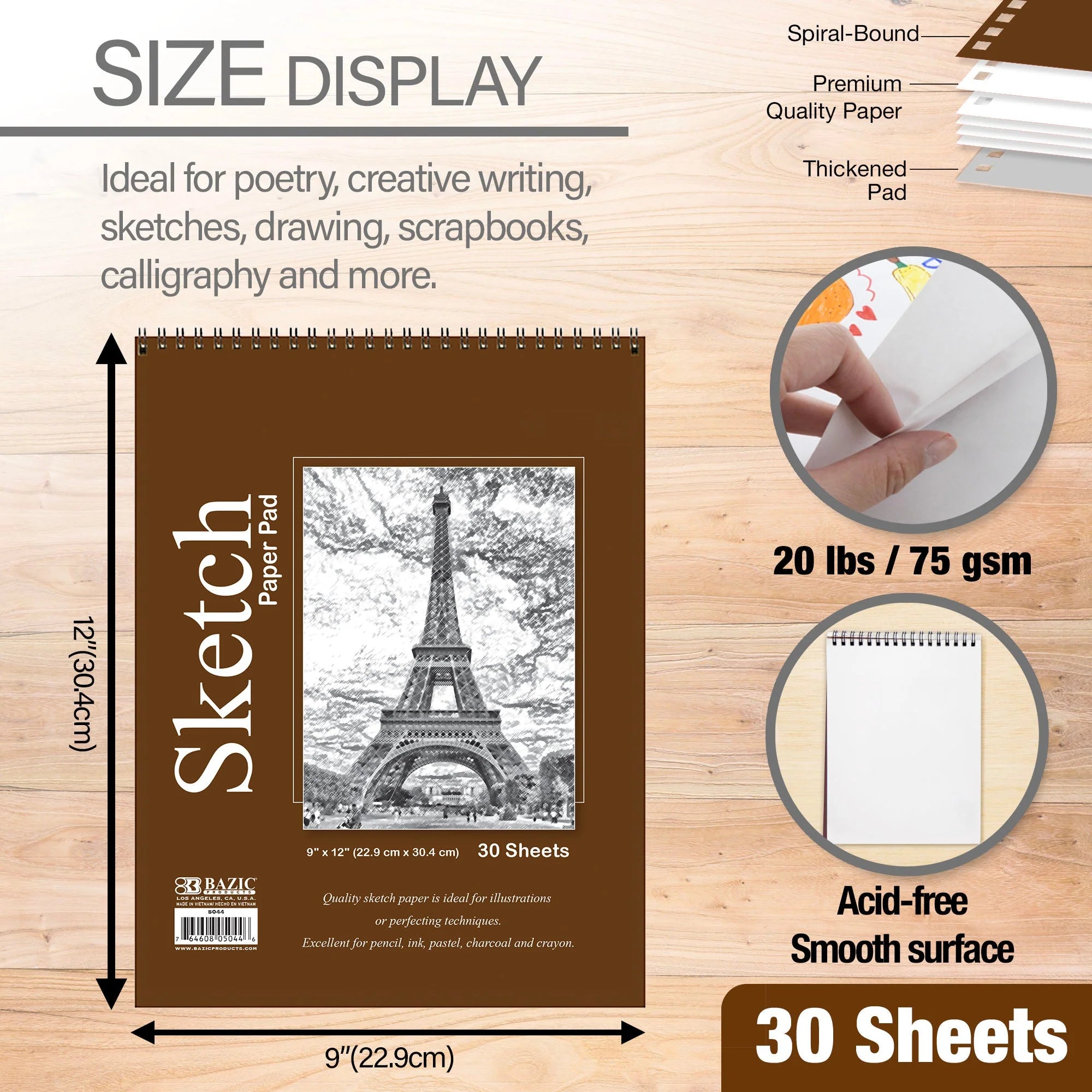 9" x 12" Top-Bound Spiral Sketch Pad β 30 Count