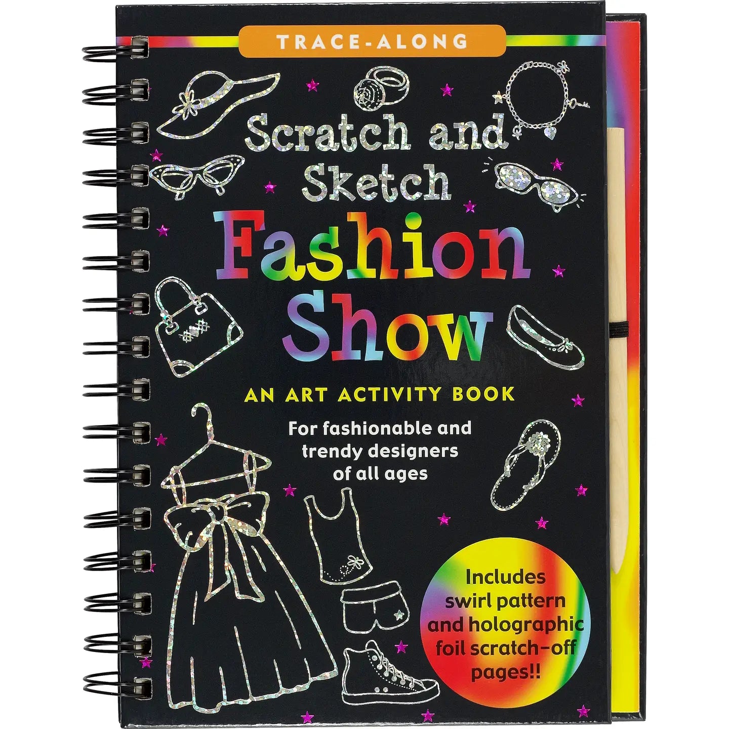 Create runway-ready looks with the fabulous Scratch & Sketch: Fashion Show activity book by Peter Pauper Press! Young designers can bring their fashion dreams to life by scratching away the black coating on each page to reveal dazzling colors, shimmering foil, and sparkling rainbow patterns underneath. With guided activities and creative prompts, kids can design outfits, accessories, and full fashion scenes with a magical scratch-art twist.