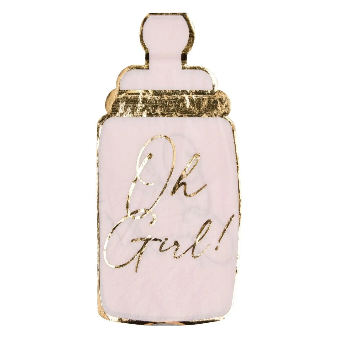 Baby Bottle Die-Cut Guest Towels β βOh Girl!β Pink