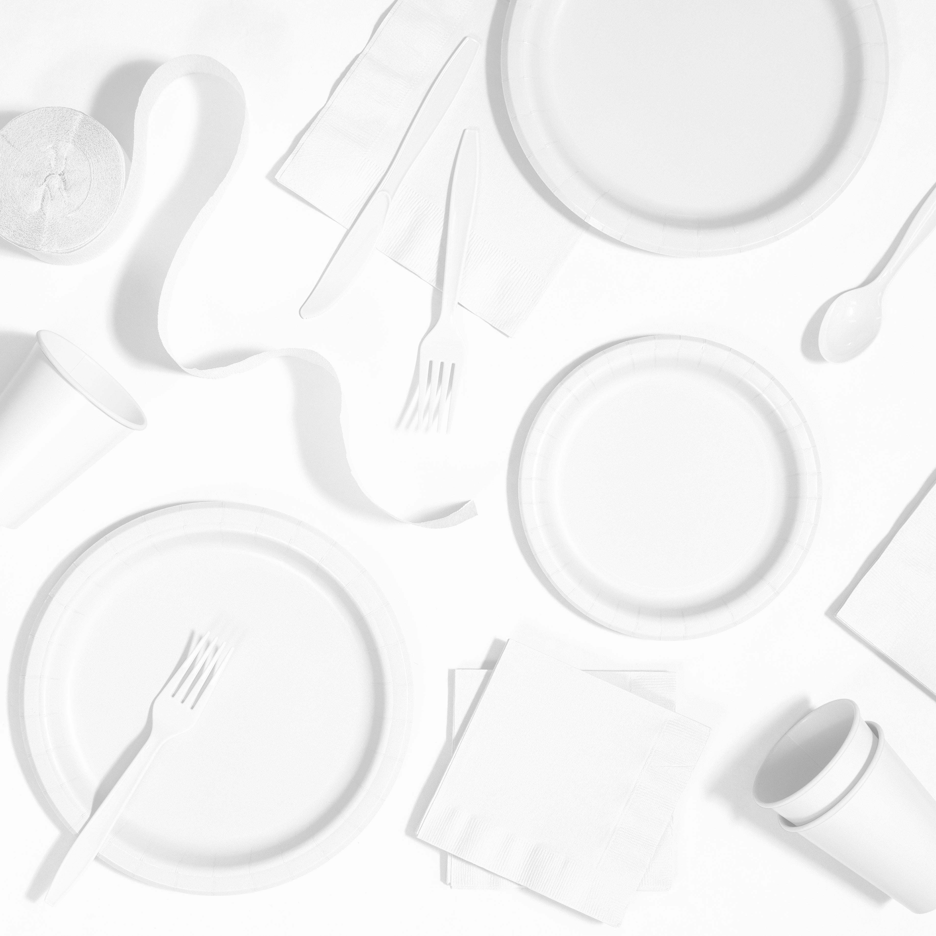 • Classic white tableware that complements any party theme