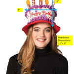 Make birthdays brighter, sillier, and absolutely unforgettable with the Birthday Cake Hat with Purple & Red Trim by Imposta! This playful party accessory is shaped like a festive tiered birthday cake—complete with colorful 3D candles, purple and red trim, cheerful sprinkles and polka dots, and a big, bold "Happy Birthday" message right on the front.