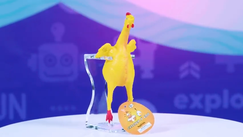 • Includes: 1 rubber chicken with hidden egg