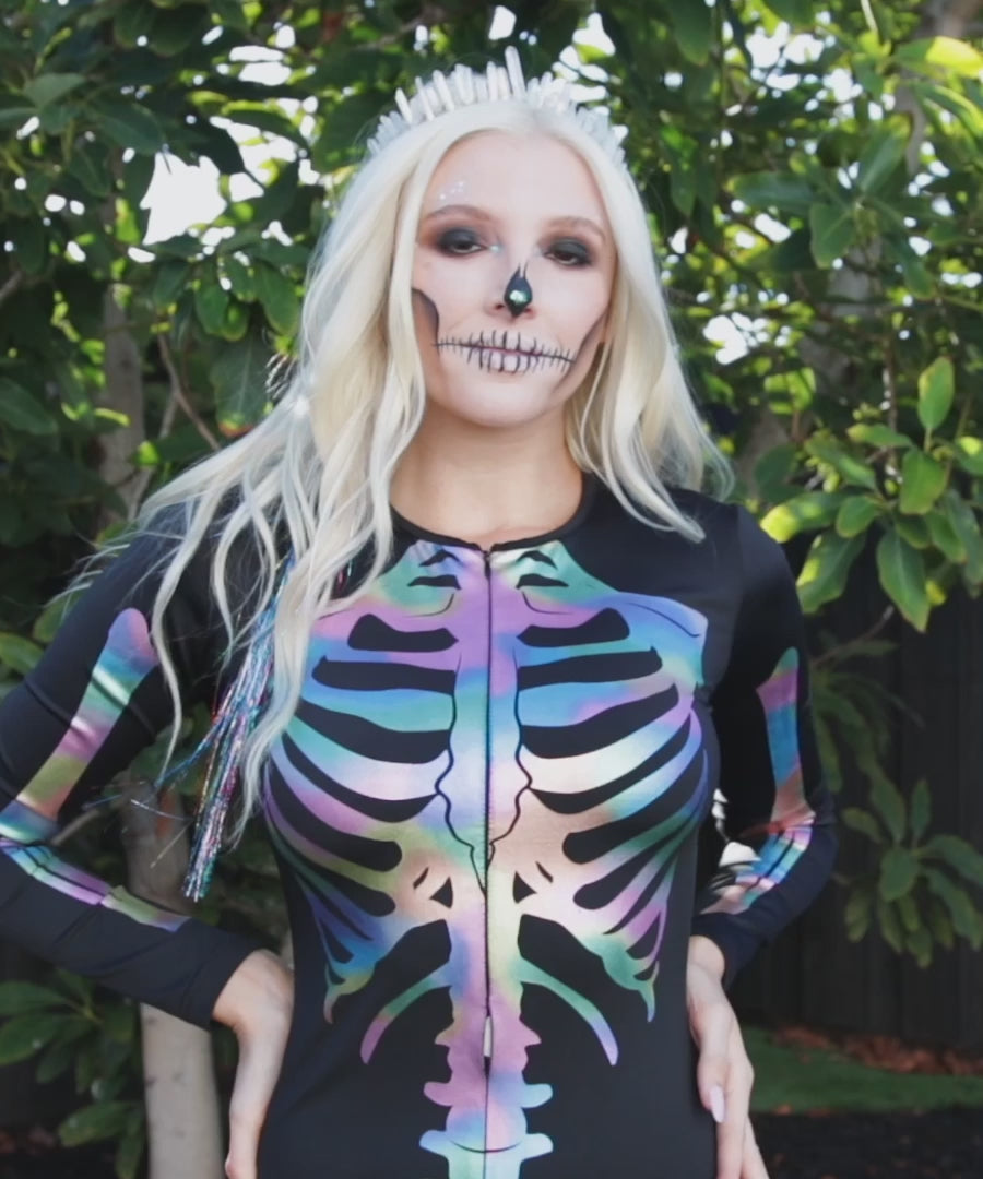 Iridescent Skeleton Bodysuit Costume by Tipsy Elves