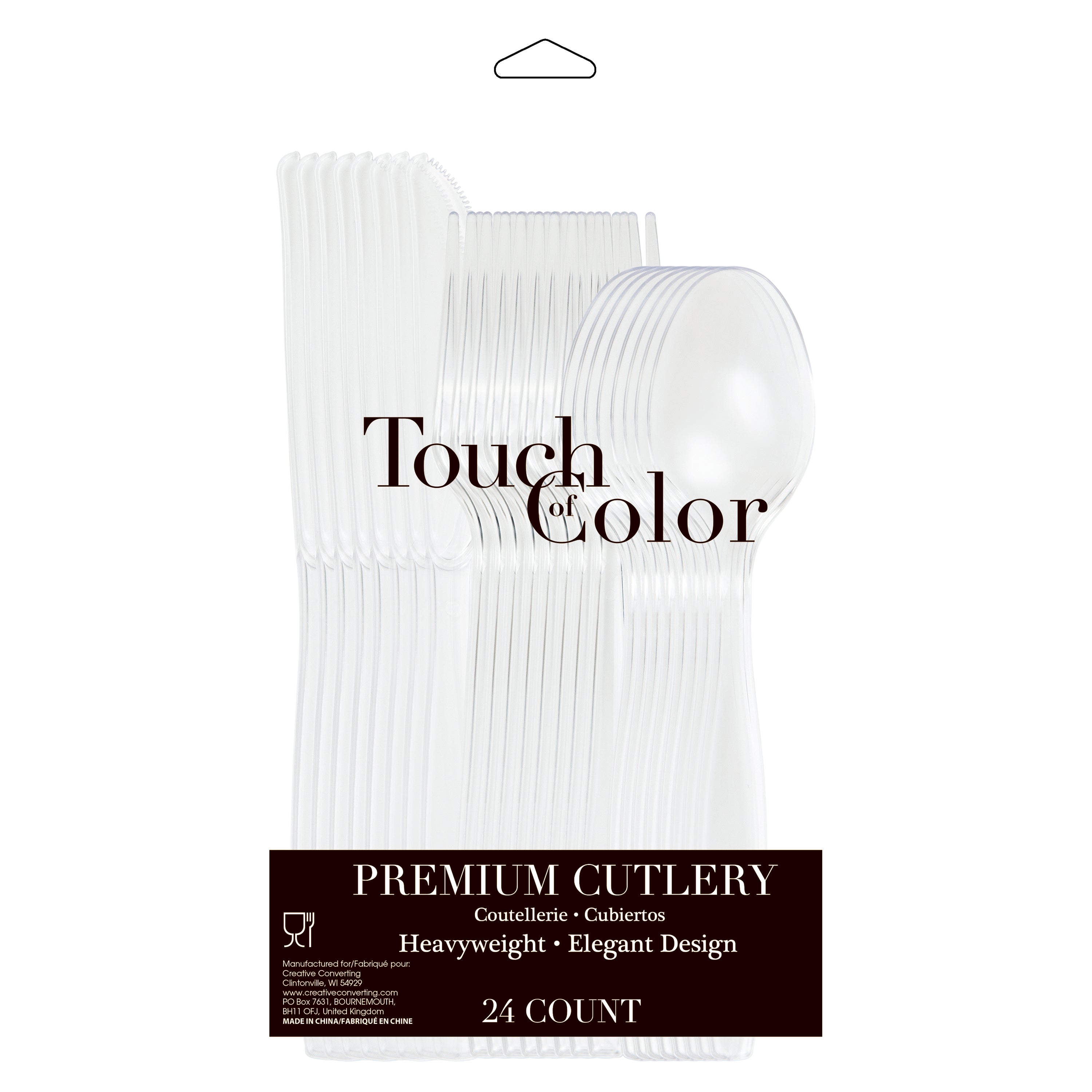 24-piece assorted cutlery pack: includes 8 forks, 8 knives, and 8 spoons