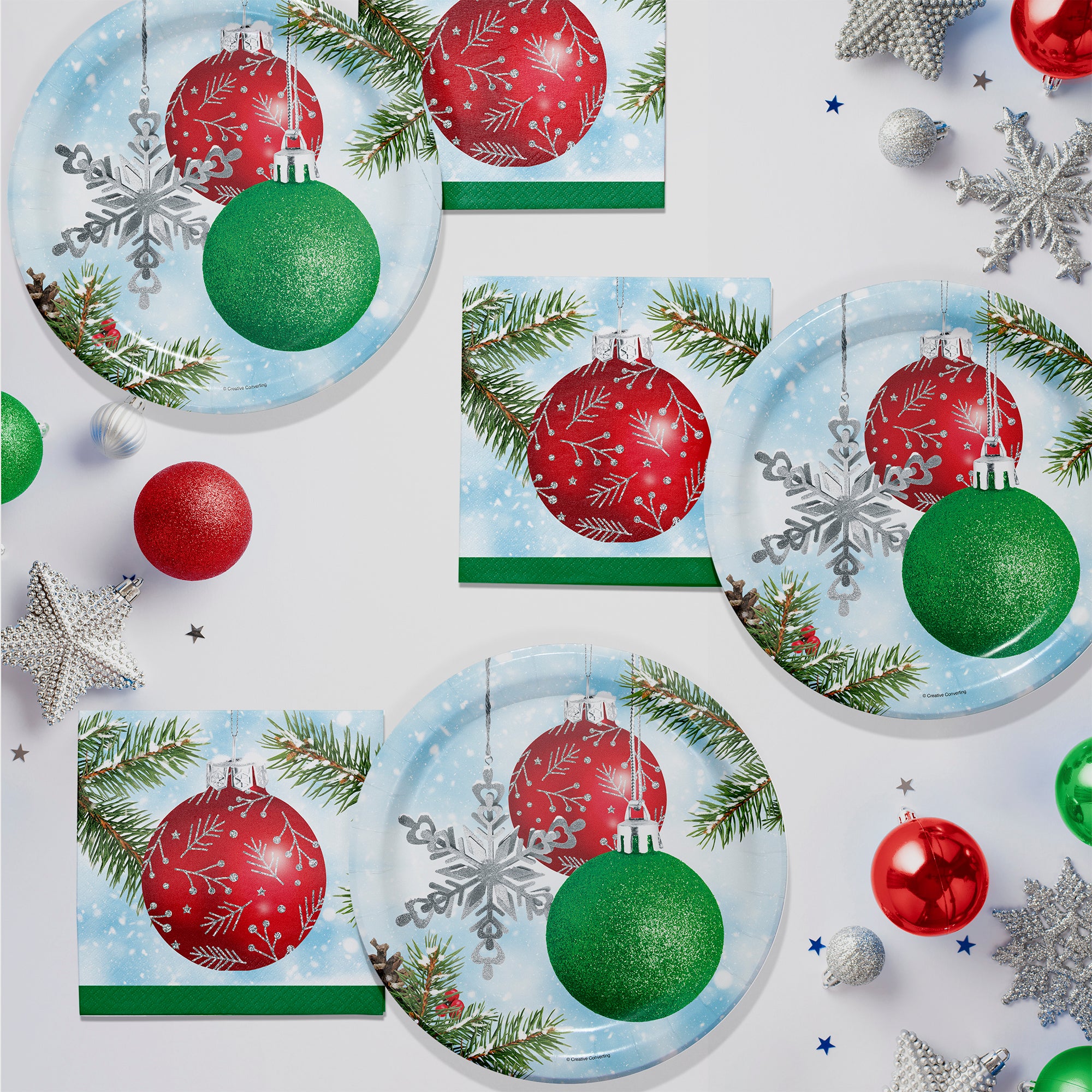 Add a touch of timeless holiday elegance to your powder room or buffet table with Classical Christmas Guest Towelsby Creative Converting. These upscale 2-ply disposable paper guest towels feature a sophisticated red and green ornament design that brings festive charm to any Christmas celebration. Soft, absorbent, and beautifully detailed, they’re perfect for restrooms, appetizers, or upscale holiday entertaining.