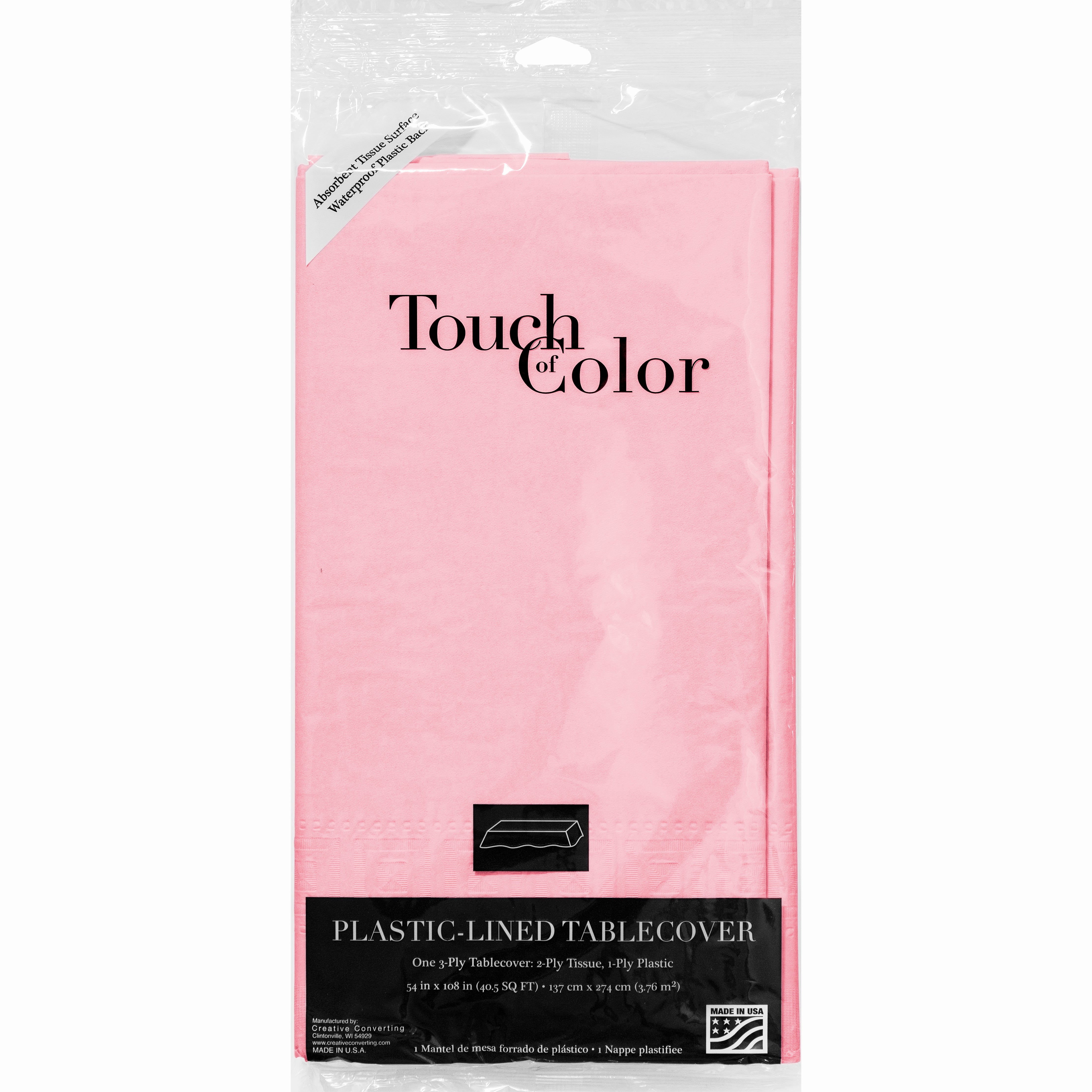 Classic Pink Tissue/Plastic Tablecover By Creative Converting