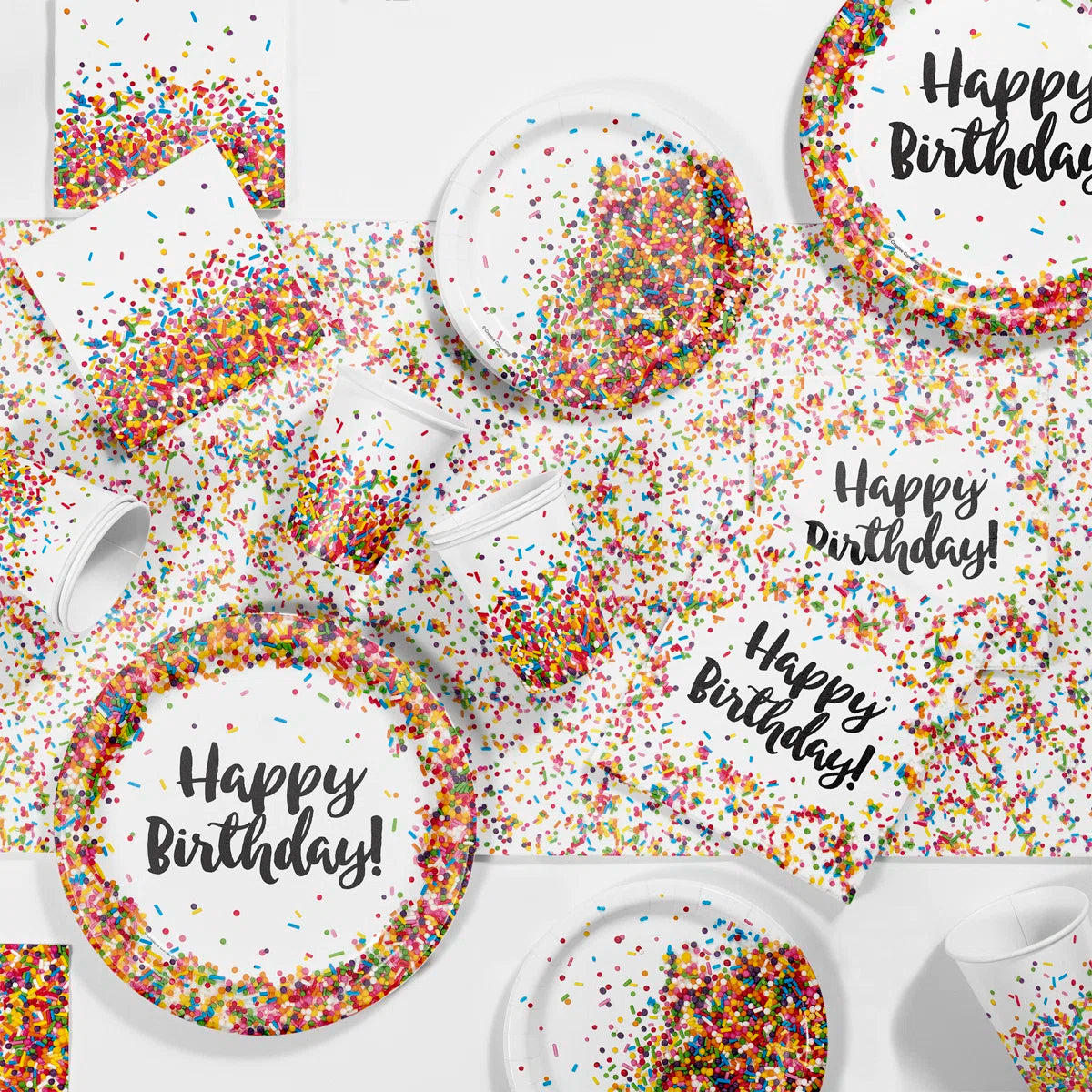 Add a pop of fun and color to your party table with these cheerful Sprinkles Happy Birthday Paper Plates! Featuring a bright “Happy Birthday” design surrounded by colorful cake confetti sprinkles, these sturdy 9-inch plates are perfect for serving cake, snacks, or party meals.