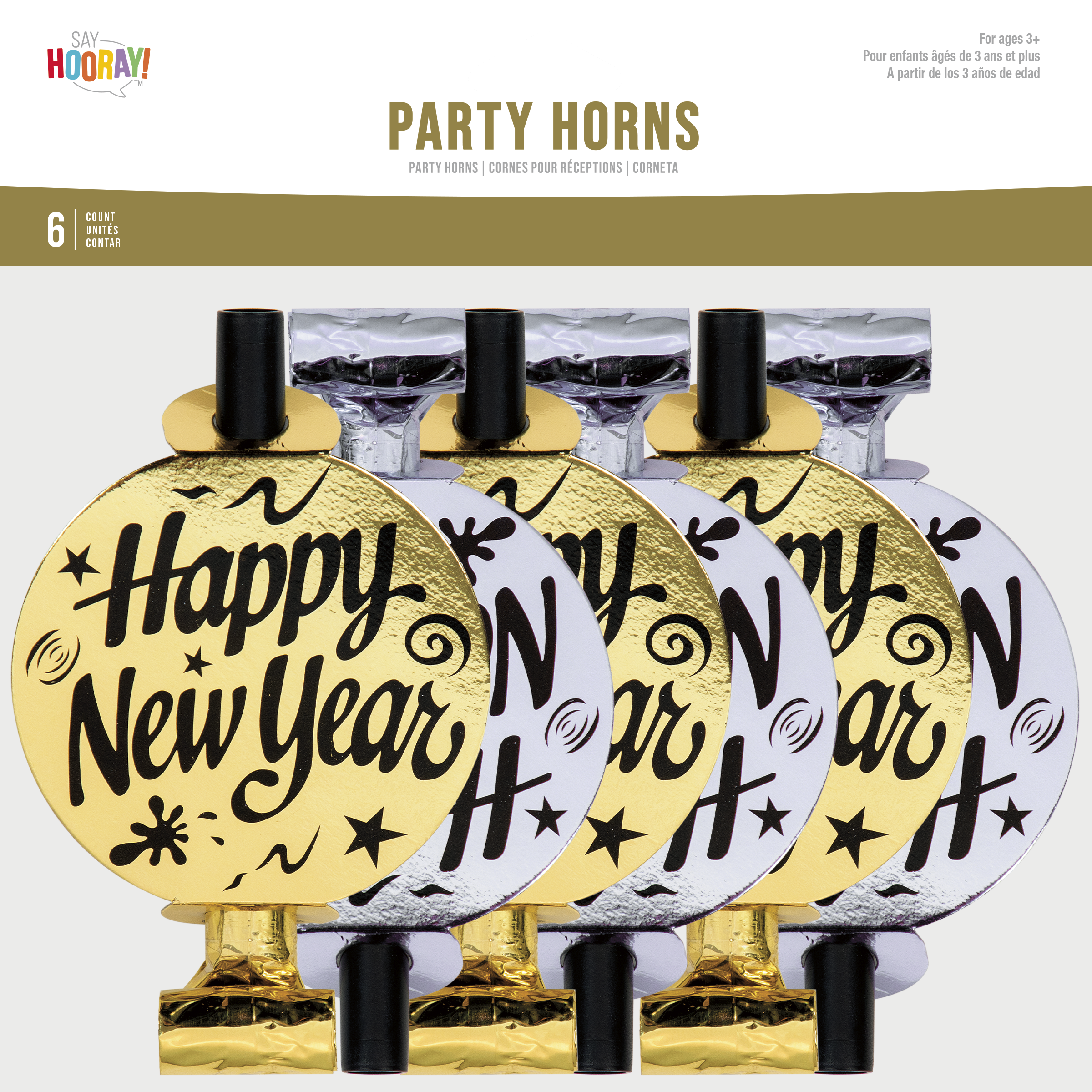 New Year's Gold and Silver Foil Horns By Creative Converting