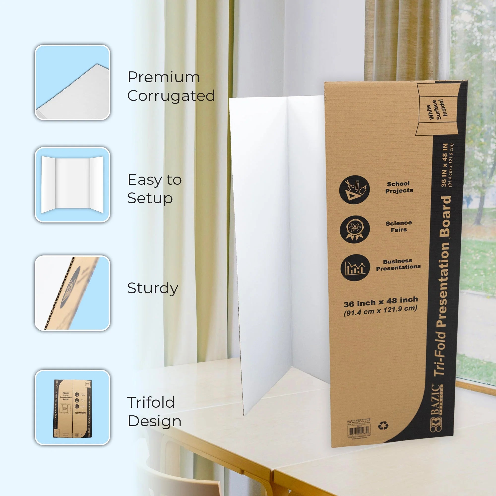 36" x 48" White Tri-Fold Corrugated Presentation Board