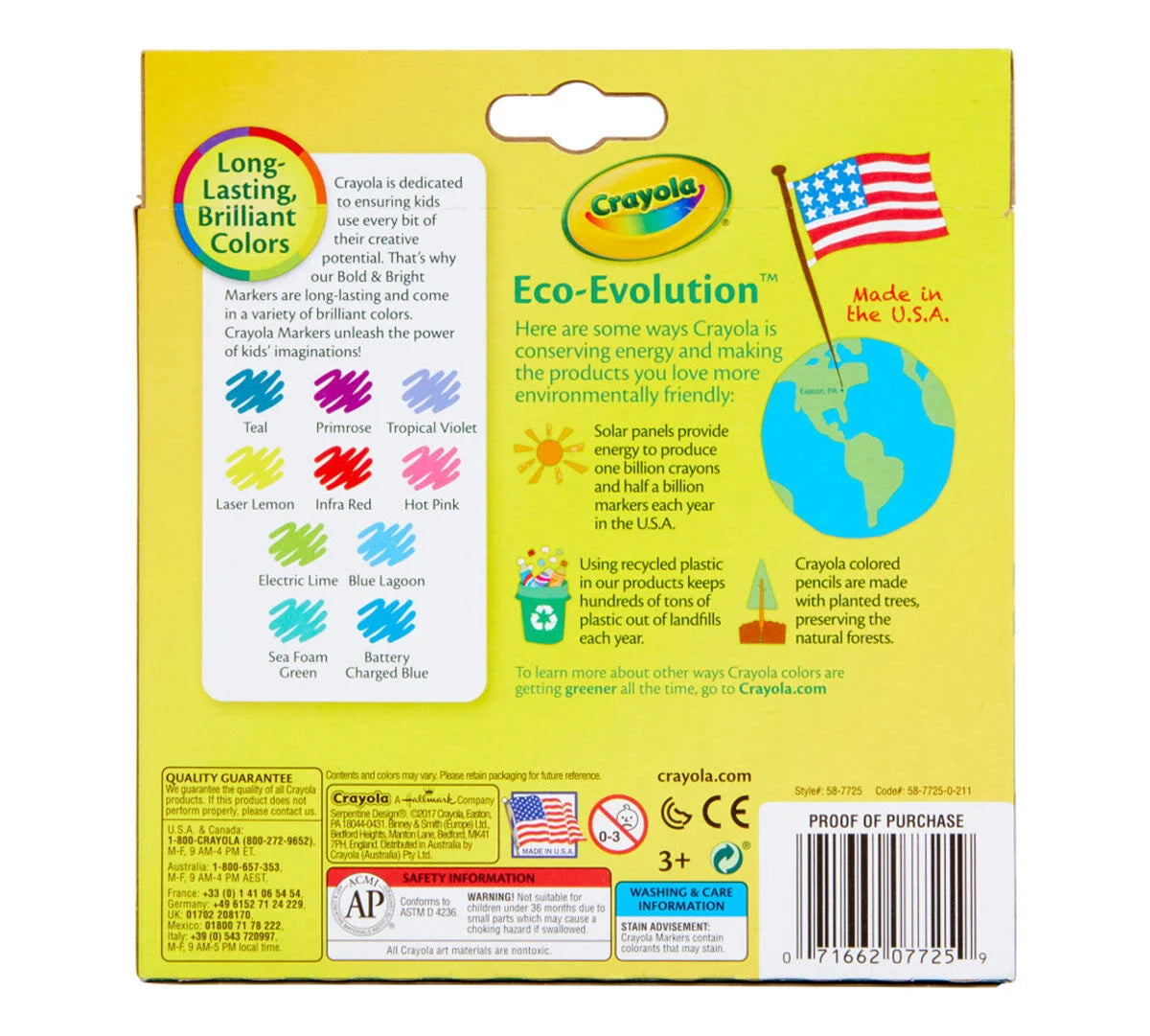 Bright and Bold Washable Markers, 10 Count By Crayola