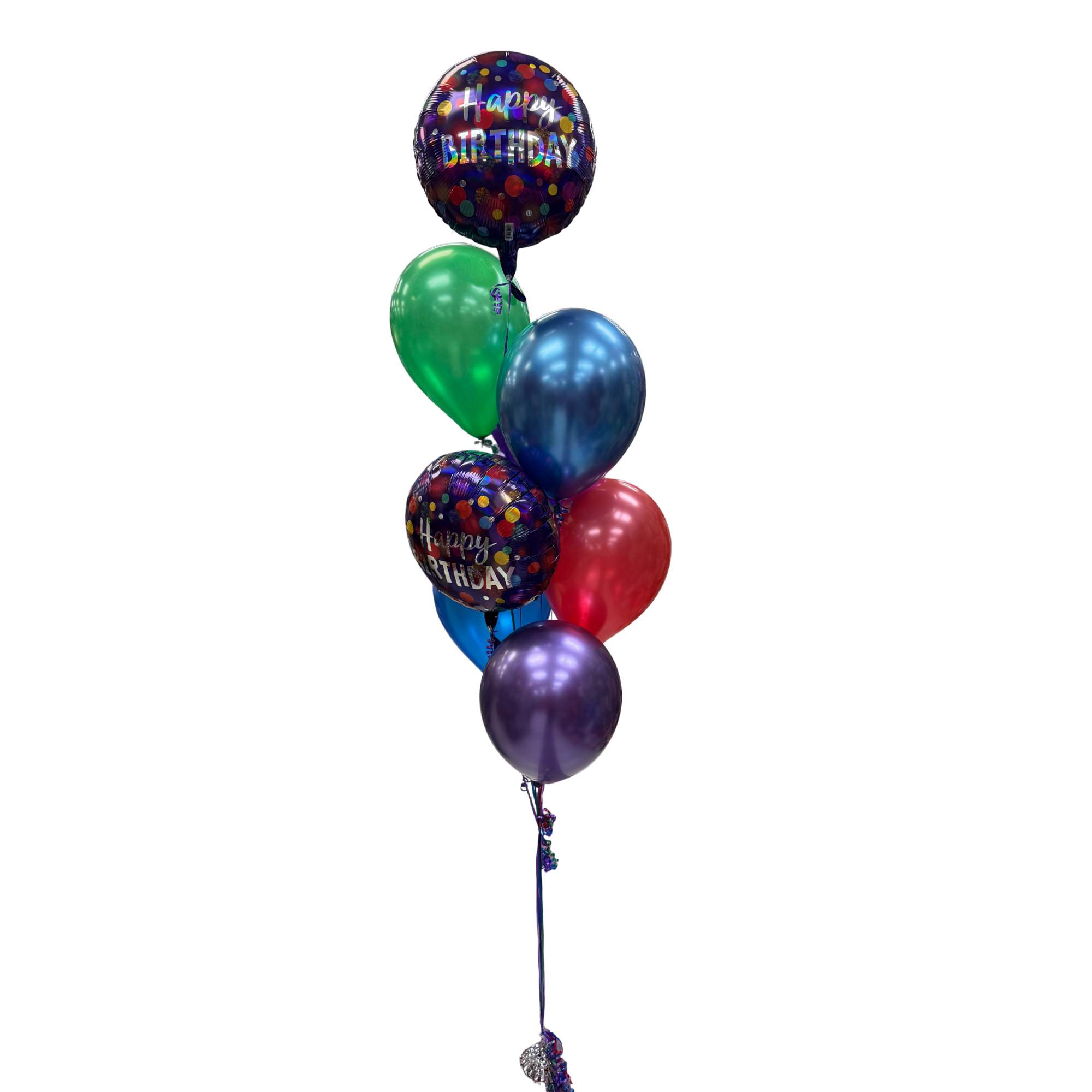Standard Birthday Balloon Bouquet - Two 18 inch Birthday Foils and Six 11 inch Latex Balloons with Hi-Float (In-Store Pick Up ONLY)